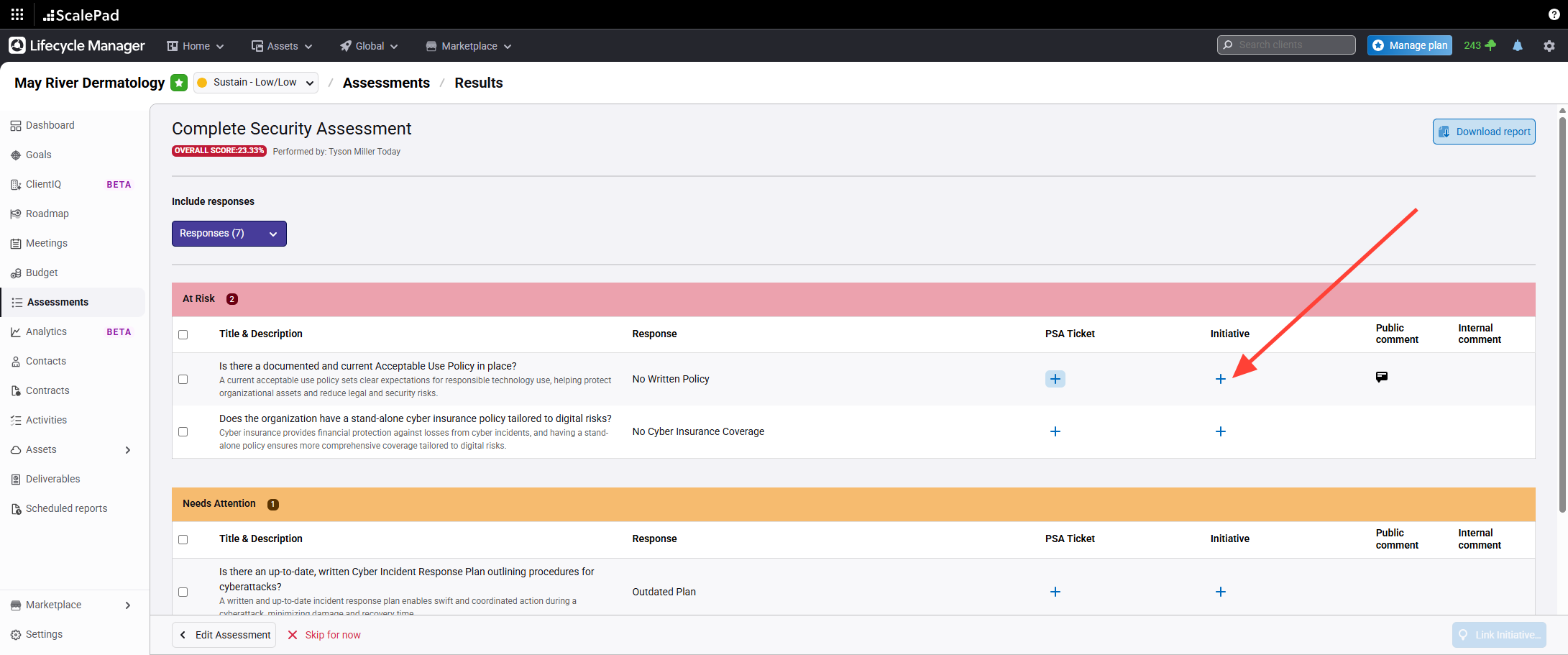 Select Create an initiative for the item as needed.