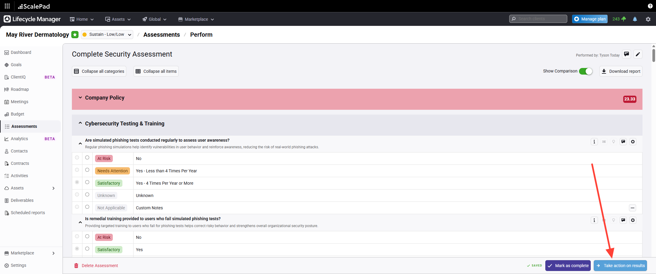 Click Take Action in the bottom right after completing an assessment.
