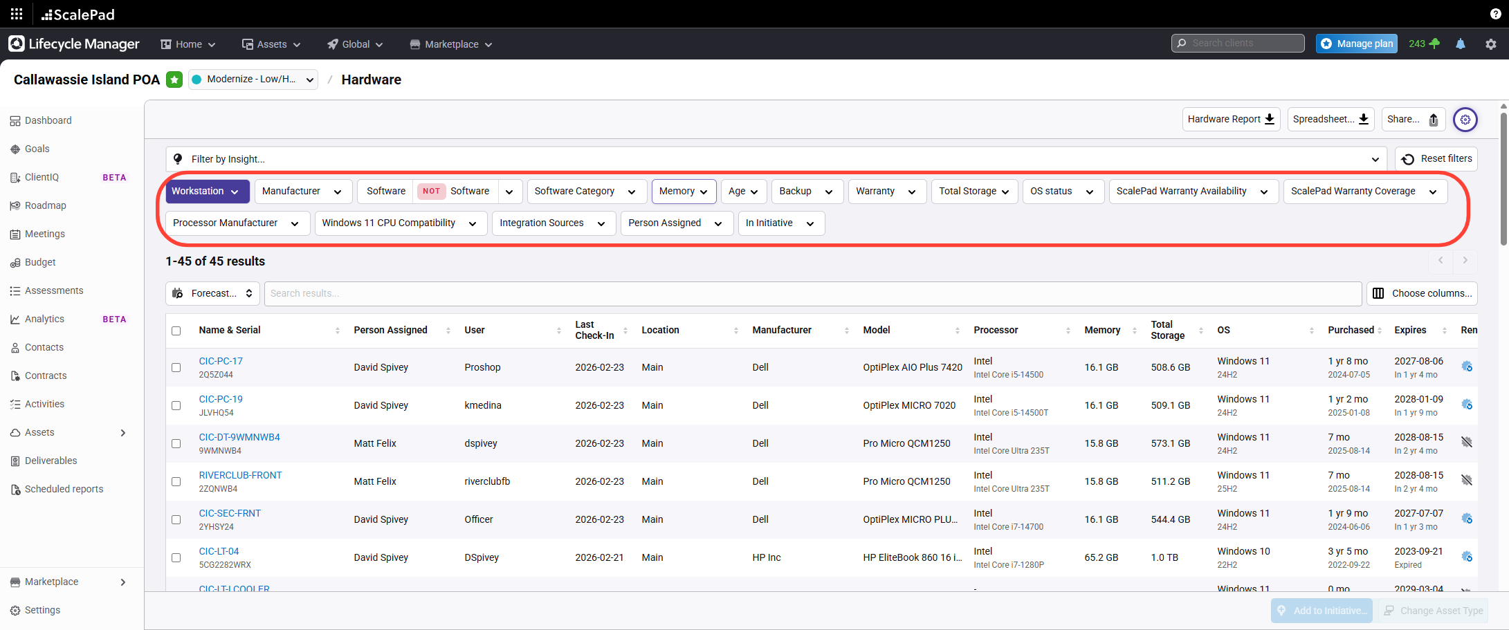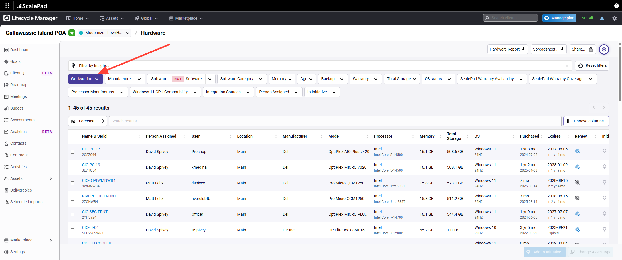 - Filter assets by Workstations