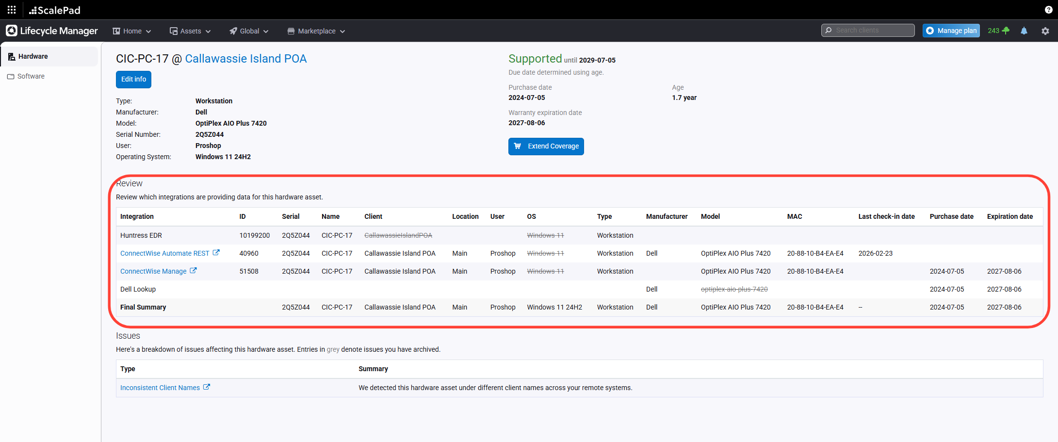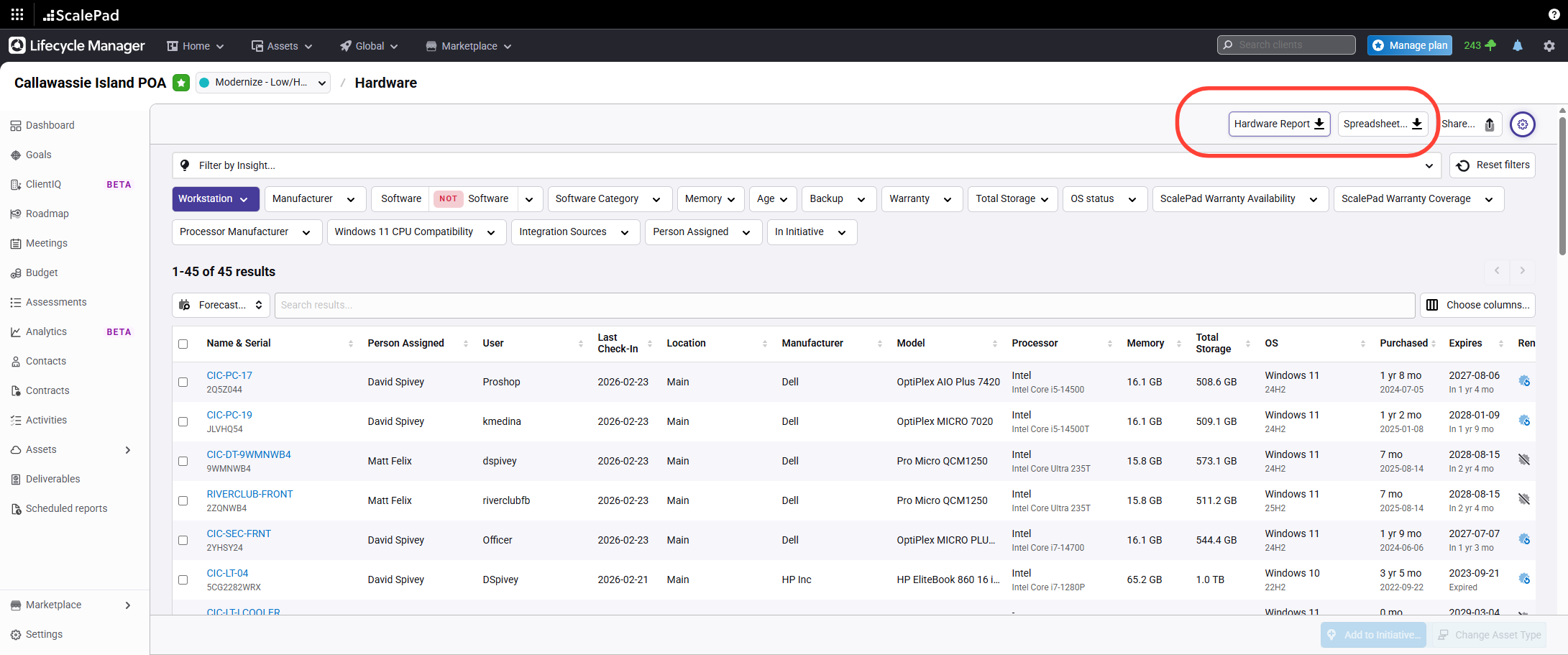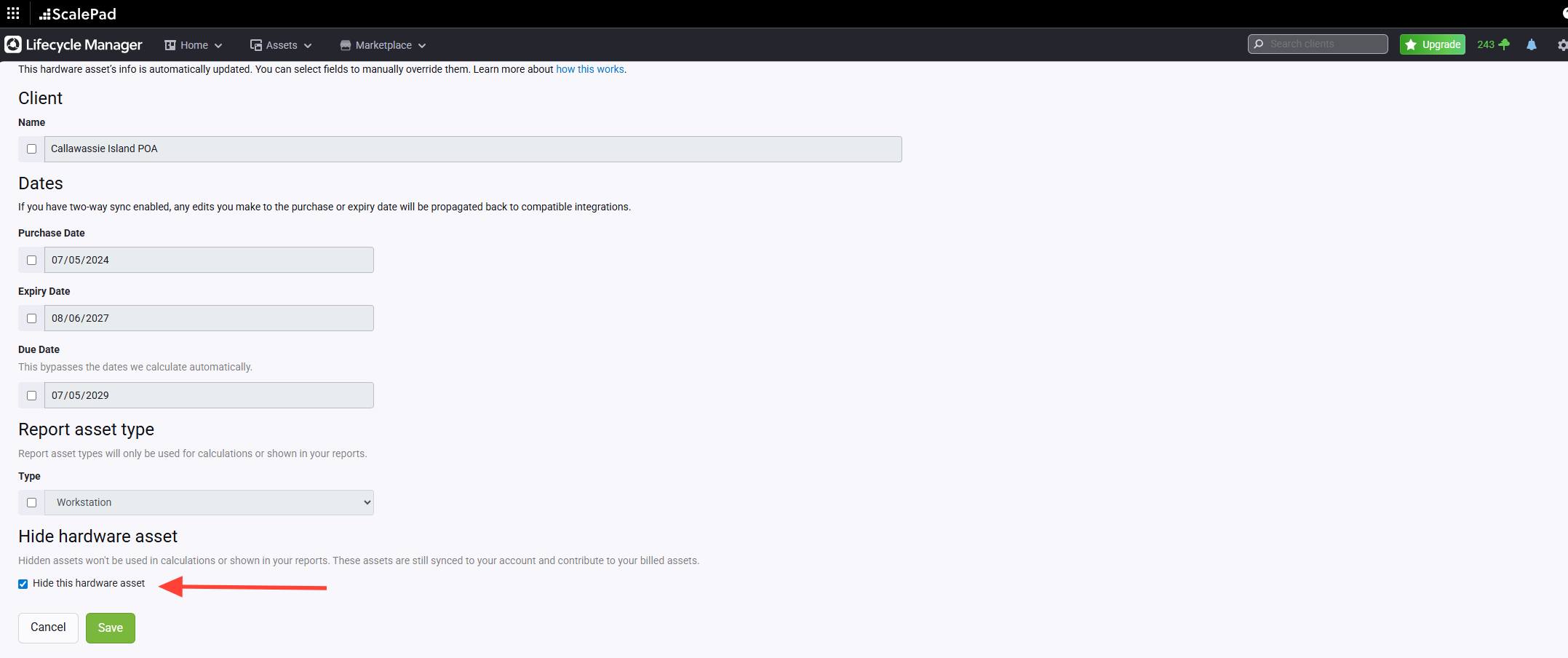 Edit asset information or hide a workstation from the report as needed.