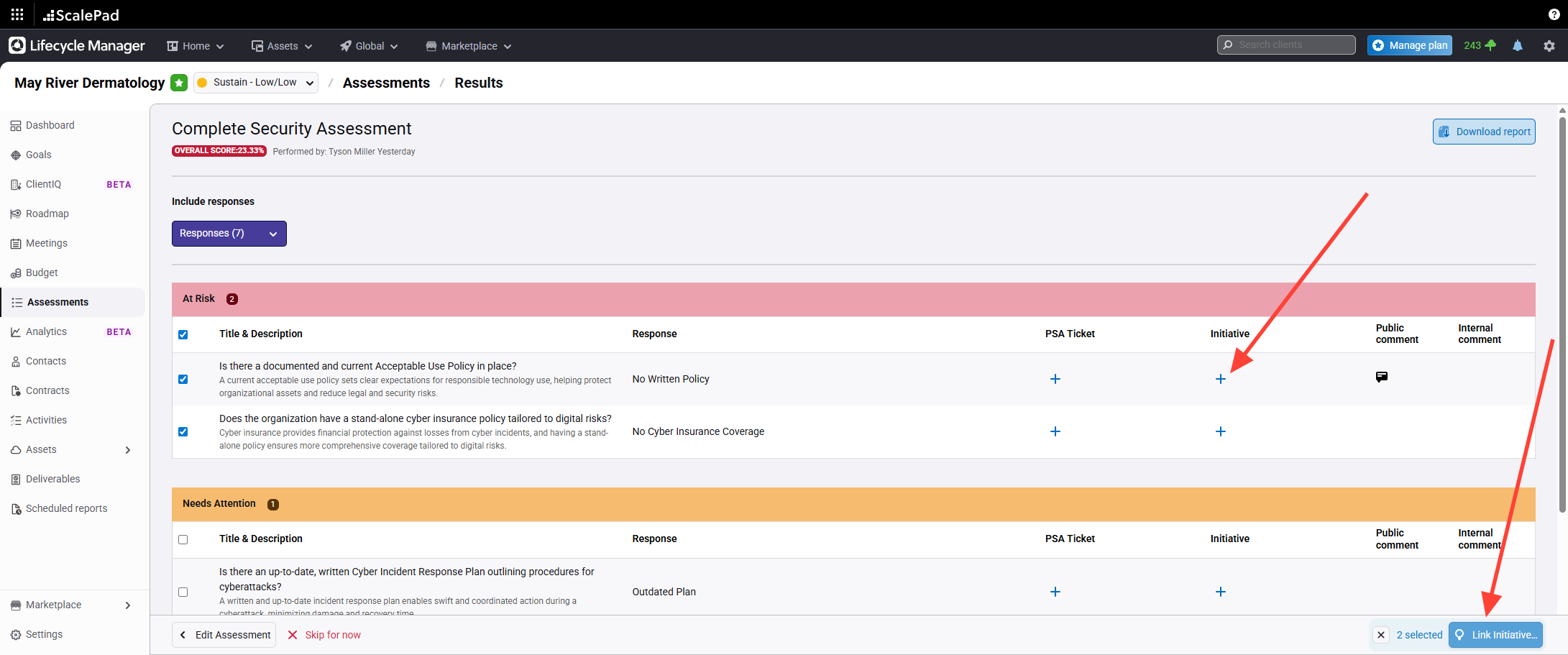 Create initiatives - From Assessments