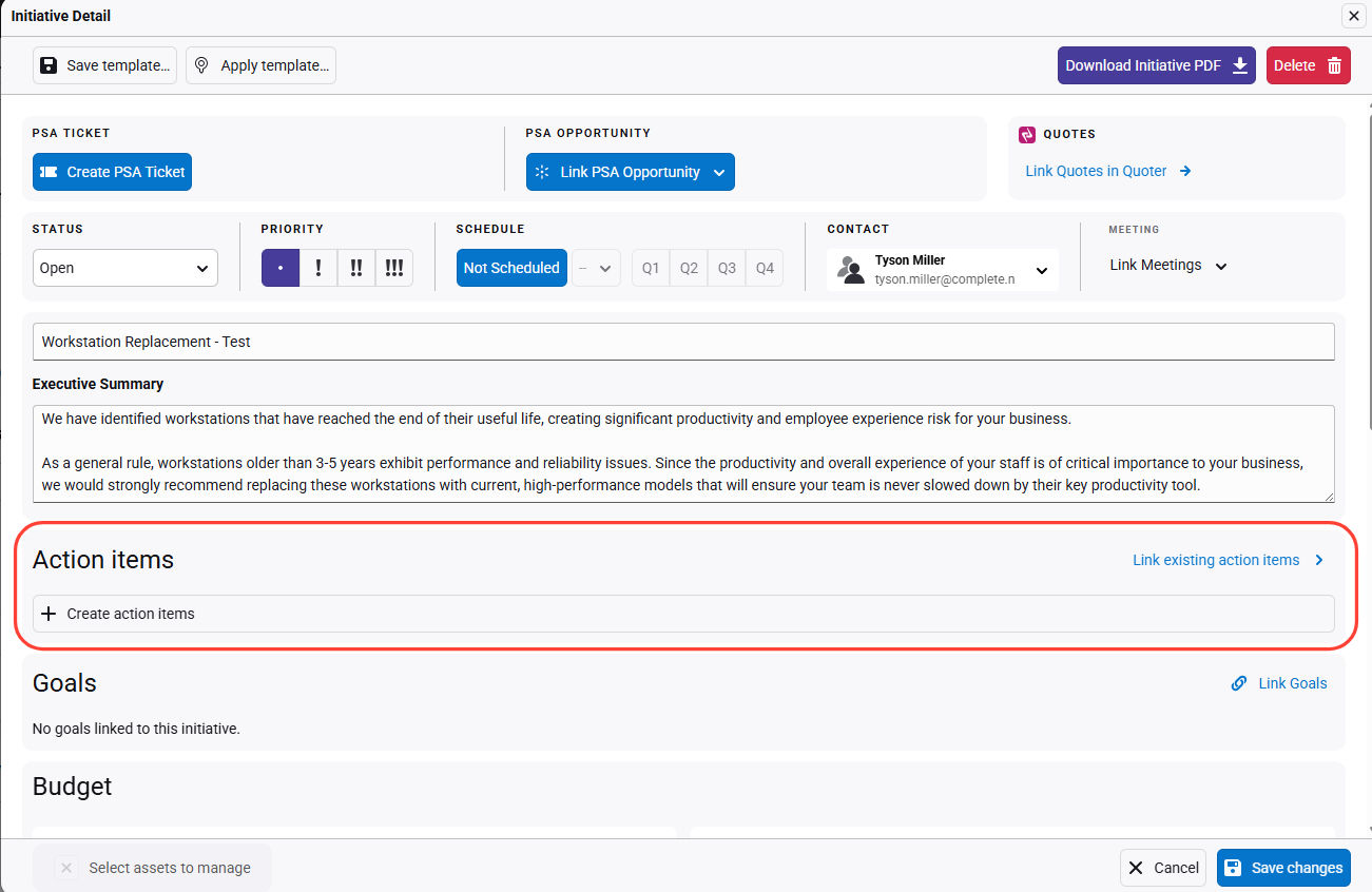 - Add or Link to Action Items