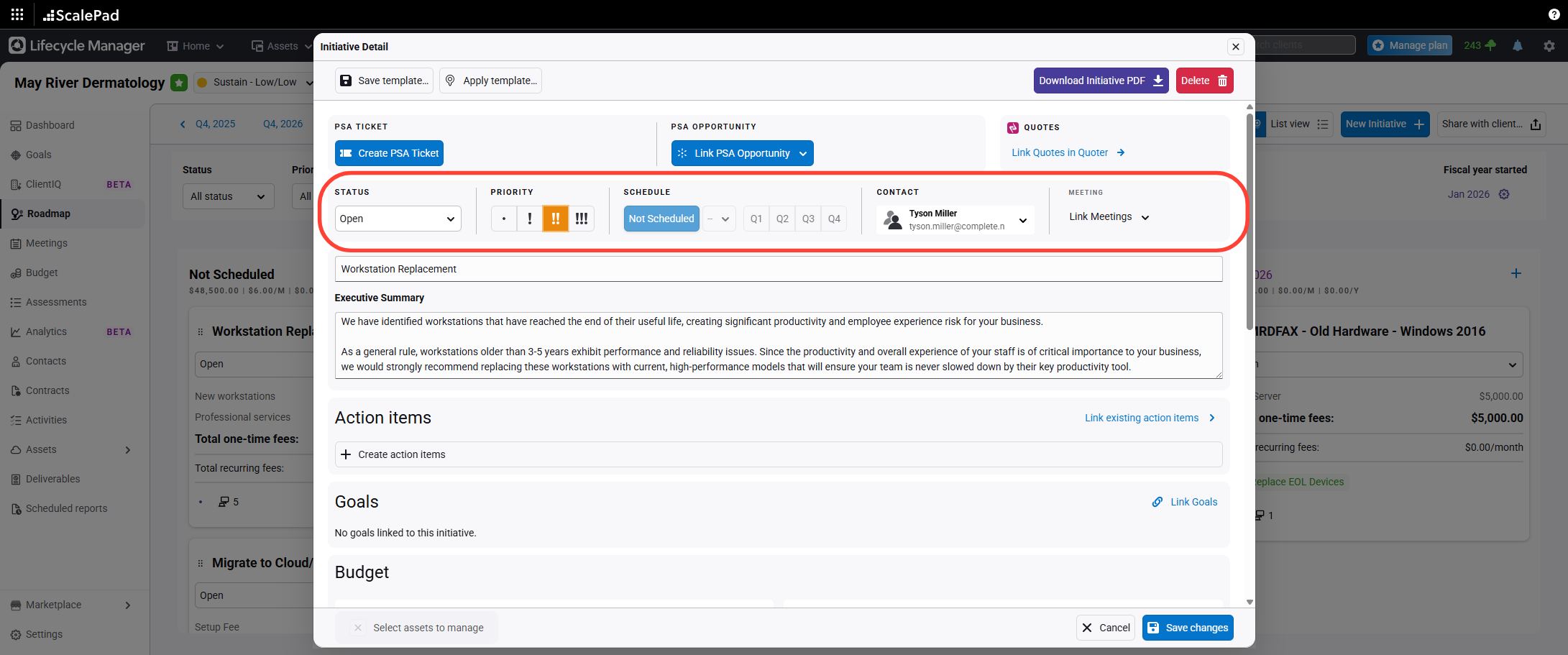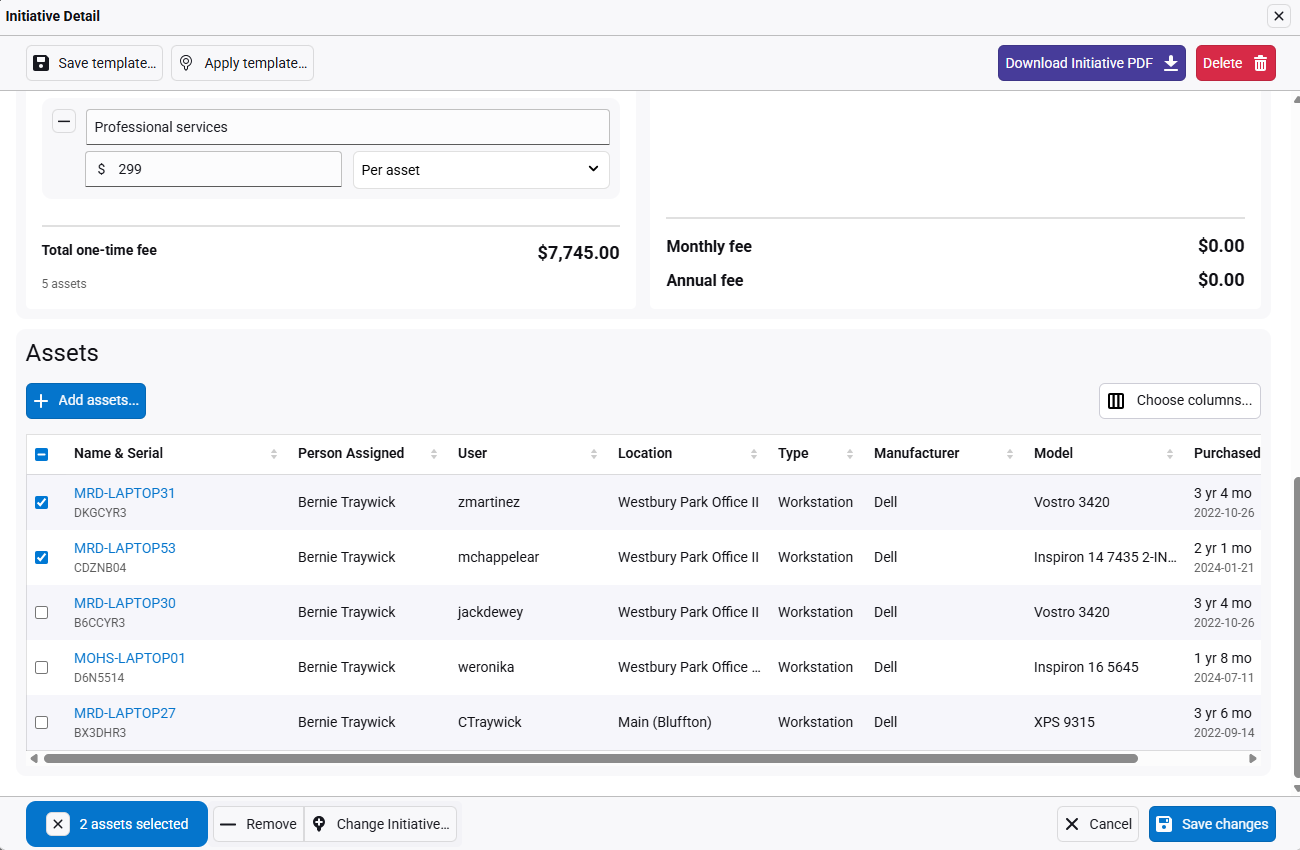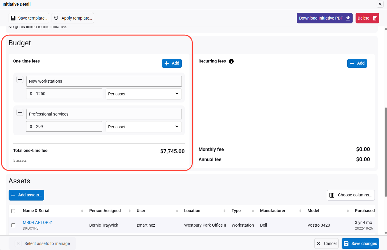 Add or remove assets as needed. Click Save changes to update the roadmap.