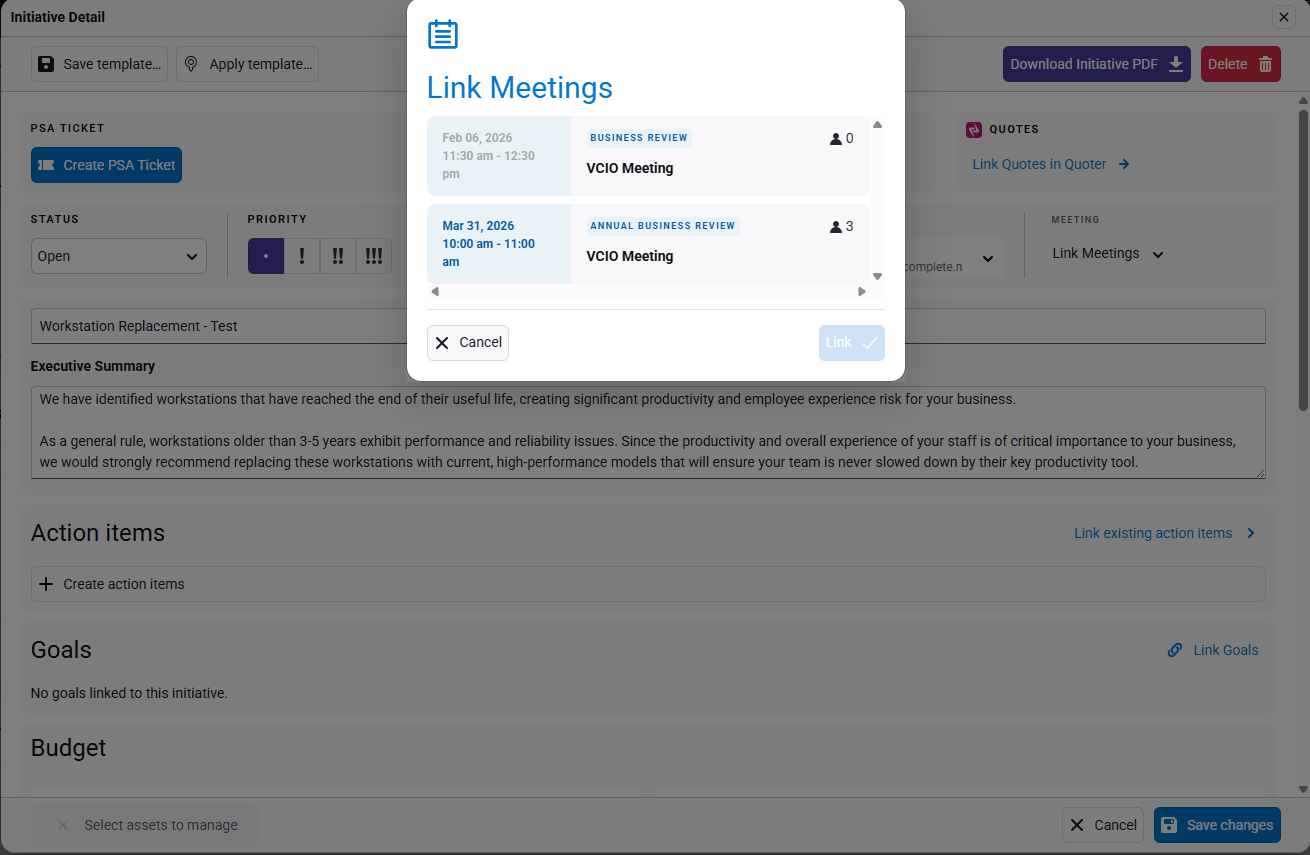 Link the initiative to meetings.